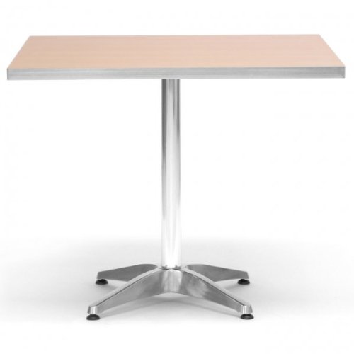 Add a low-key contemporary panache to your dining area with the sleek Altgeld Dining Table. This table is perfect for an intimate group of 4 to gather and enjoy drinks and conversation, or you can just as easily push 2 or more tables together for a larger group. The square Altgeld Table includes an aluminum base and legs with adjustable levelers as feet so you can stabilize the table. The tabletop is made of light beech effect laminated engineered wood with a silver frame and uses deep-well sockets for assembly. The Altgeld Restaurant Table is also offered in a large rectangular dining table size, small round cafe table, small square cafe table, and also several size variations in a dark wenge brown effect finish (each sold separately). To clean, wipe with a damp cloth. Made in China; fully assembled. Overall Dimensions: 29-1/2-inch H by 47.4-inch L by 23.7-inch W.